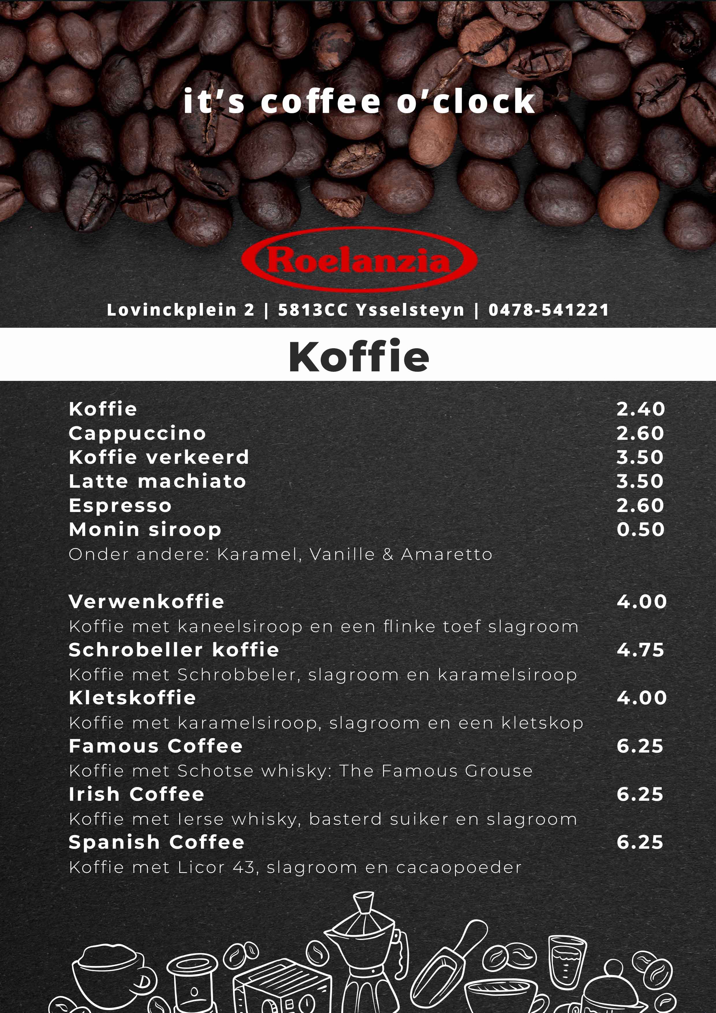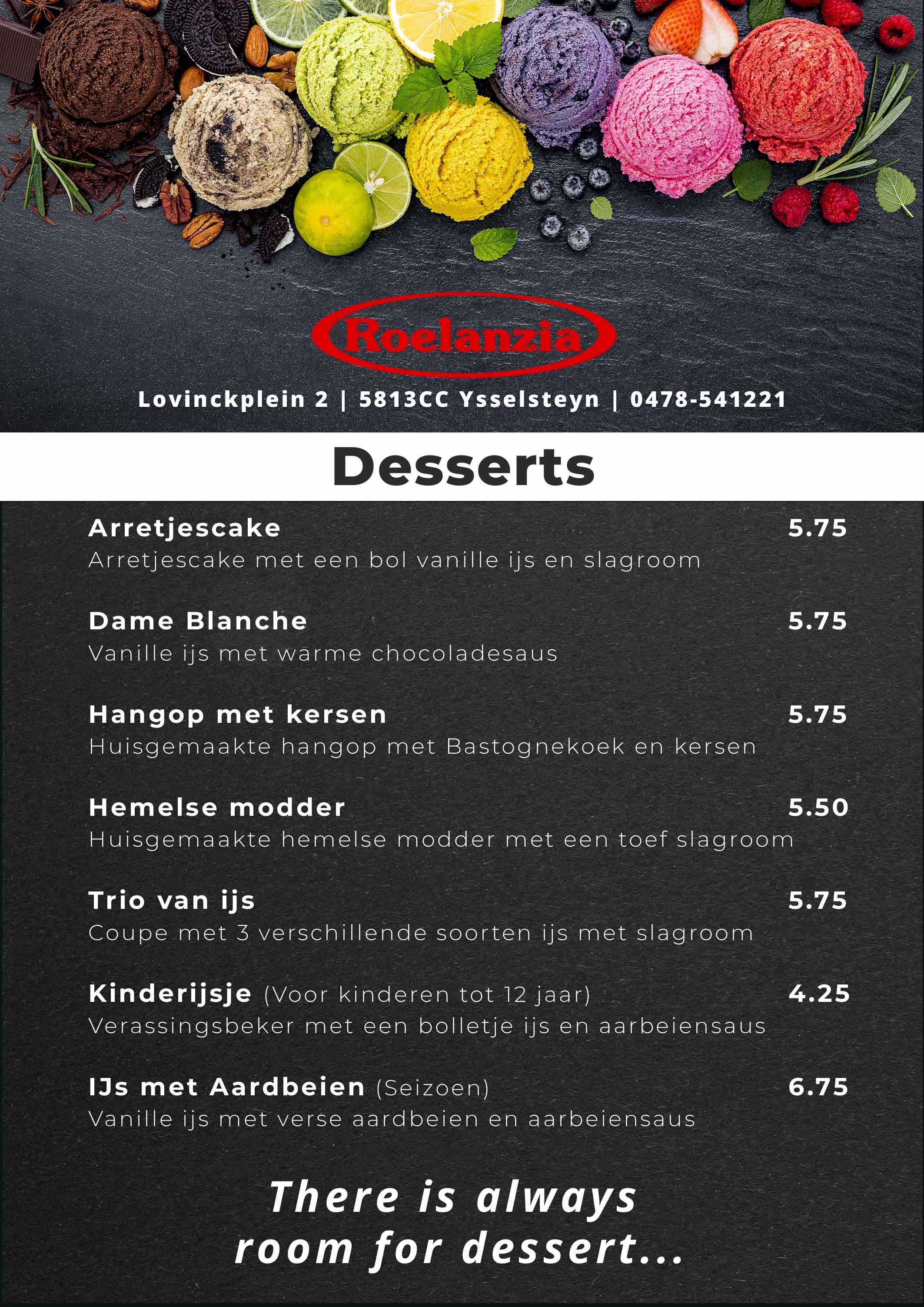 U kunt eventueel afsluiten met een speciale koffie bij onze open haard. Of u laat u verrassen door onze uitgebreide lunchkaart.